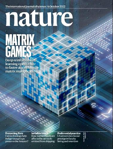英国《自然》杂志封面以“矩阵游戏”为题,发表了人工智能(AI)公司“深度思维”团队的最新发现:AI可解决矩阵乘法问题。这是第一个可为矩阵乘法等基本任务发现新颖、高效且正确算法的AI系统。换句话说,这个名为“AlphaTensor”的AI能自行发现新算法,从而解决了50年来数学领域一个悬而未决的问题——找到两个矩阵相乘最快的方法。